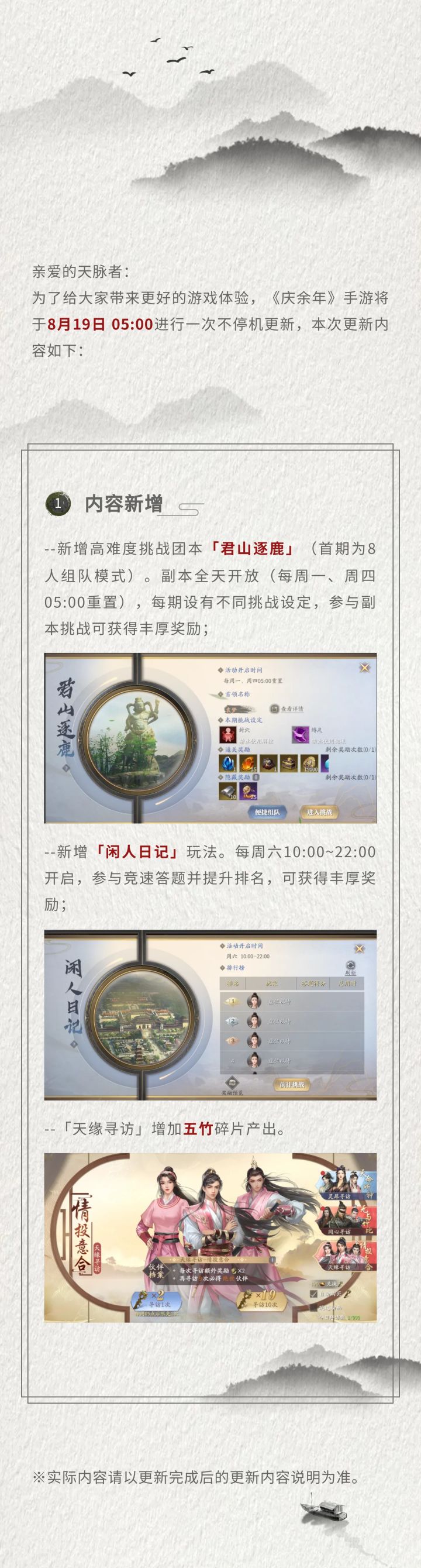 天脉者们好,又到了更新日,本期更新公告奉上~
