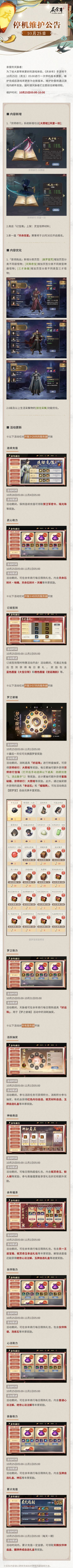 亲爱的天脉者为了给大家带来更好的游戏体验,《庆余年》手游将于10月25日(周五)05:00进行一次停机版本更新,维护完成后游戏将更新为全新版本,维护补偿将通过游戏内邮件发放,届时请天脉者们注意前往邮箱领取。维护时间:10月25日05:00-10:00