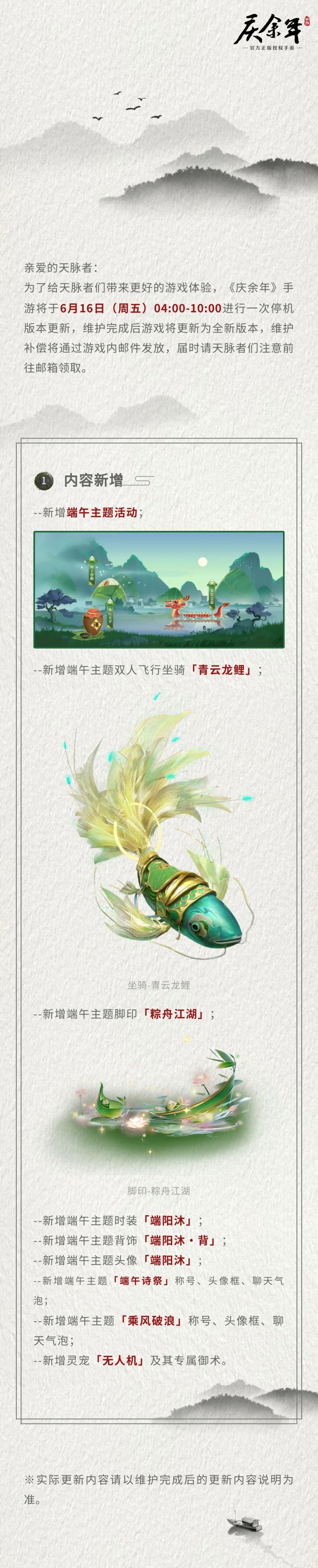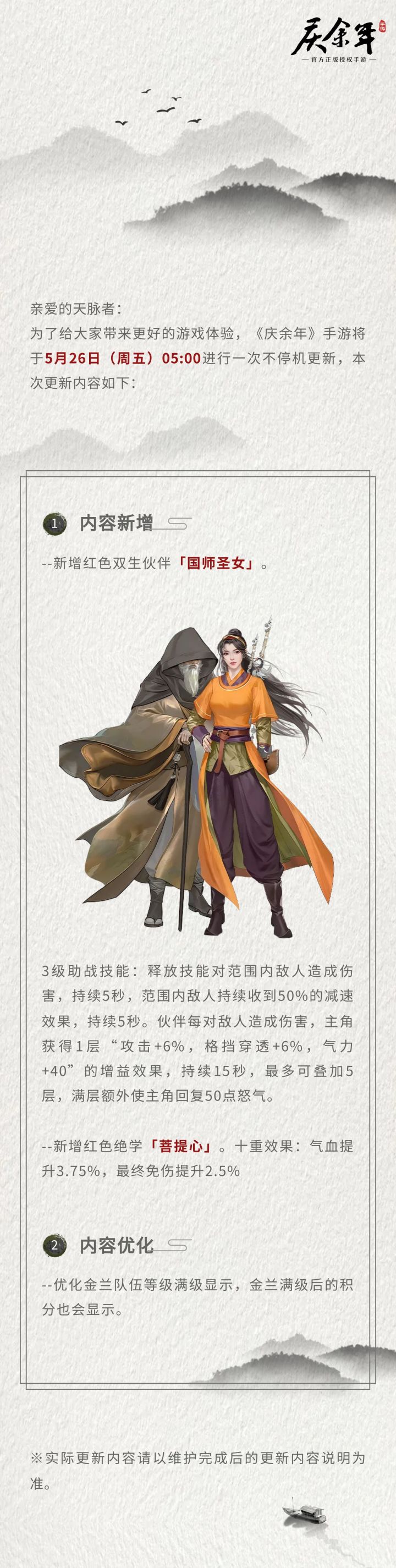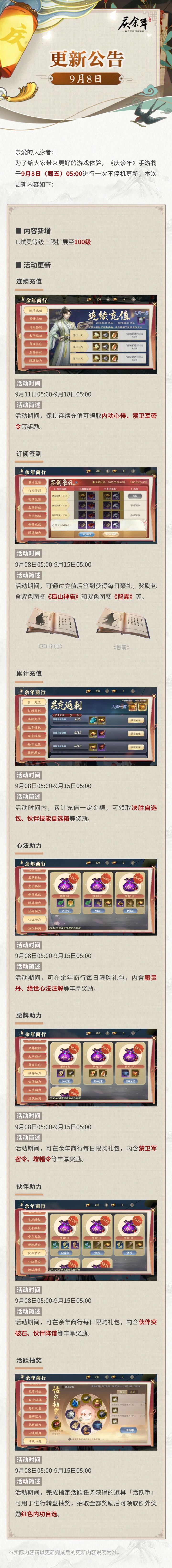 各位天脉者们好~《庆余年》手游将于9月8日(周五)05:00进行一次不停机更新,公告请查收哦