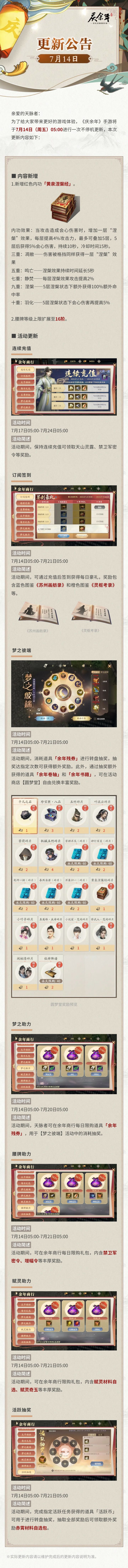 《庆余年》手游将于7月14日(周五)05:00进行一次不停机更新,详细内容如下哦~