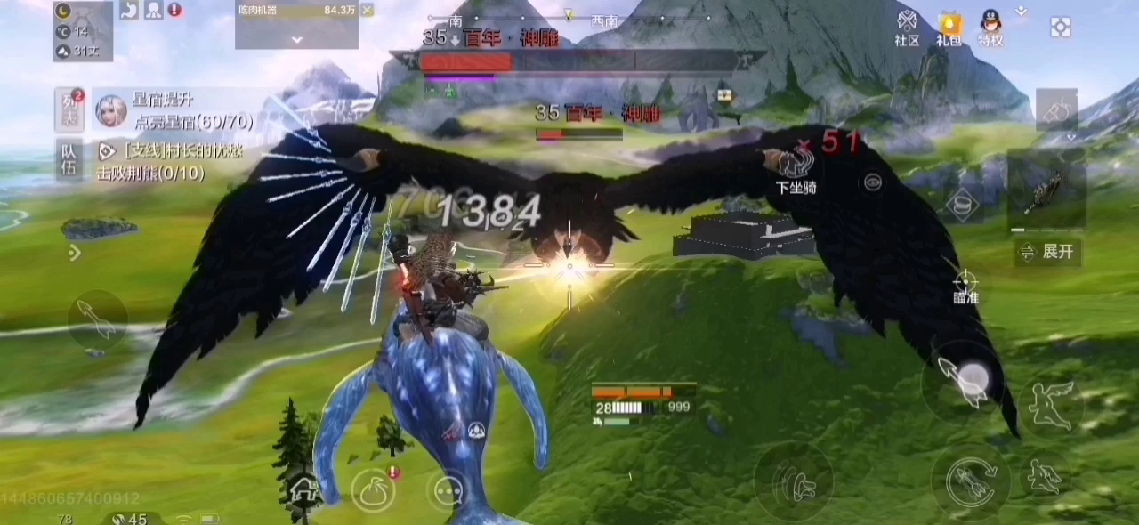 打神雕,鲲飞的慢,吃了几发火球,把弱点位置血量打光之后它再起来就变成这样了,一直到被我打死都没有还过手