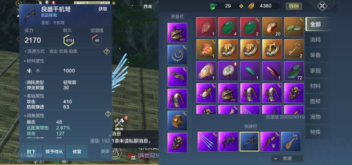 目前这个装装备 出了紫装蓝色都可以在暮雪活动弄 有紫更好 打鸡龙就直接骑孟极全程跑 基本能规避大量的伤害 如果不小心吃了伤害基本也不会直接被秒 就是有点费孟极打鸡龙不要用侍从 要要大量备轻弩箭