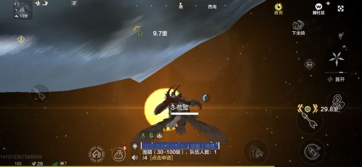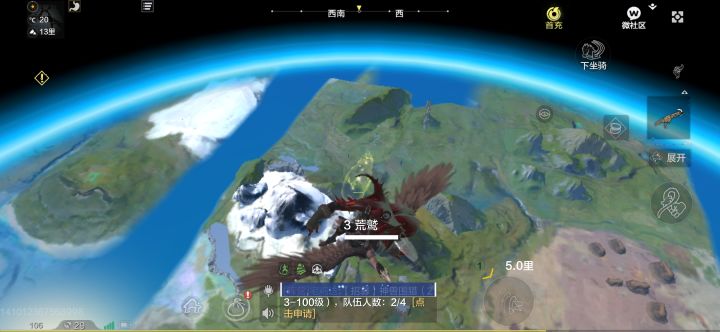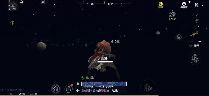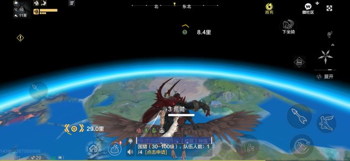 然后是在宇宙中飞行如何续航的问题。众所周知,由于宇宙中是真空的(X),所以异兽在飞行的过程中所受到的阻力是最小的。但在妄想山海里,由于山海地球的引力过大,所以我们要想保持零阻力飞行,就需要找到引力与真空带的平衡点。根据我的经验,就是在异兽的飞行轨迹与地面水平的时候,在这种情况下,我们的耐力条是不会动的,即便你按下加速键也不会消耗的那种(不过记得转向的幅度不要太大,免得一头栽回地球就前功尽弃了)。