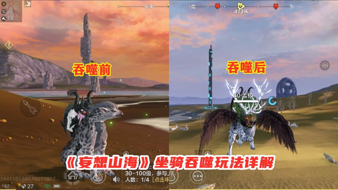 山海经题材无缝大地图开放世界建造手游:妄想山海:坐骑吞噬玩法详解,吞噬后海陆空飞行坐骑,手游试玩:妄想山海坐骑吞噬玩法,开局一只豹,吞噬异兽长翅膀!妄想山海:坐骑吞噬玩法详解,吞噬前陆行豹,吞噬后陆空飞行豹!