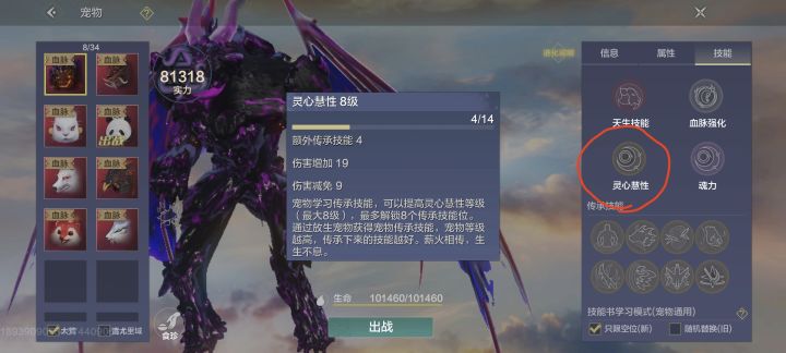 大家好,今天给大家讲讲宠物技能书如何选择。从基本的技能书开孔开始。宠物一共有8个技能孔位,需要提升宠物的灵心慧性。提升灵心慧性需要消耗灵心晶露或者一个宠物技能书。消耗二者之一提升一点,每一级都需要提升相应的点数才会开启新的技能书孔位。灵心晶露可以在商店里面购买,虚楼的狗击杀也会掉落一个。技能书推荐使用不需要的一级技能书(技能书不论几级开孔都只会增加一点)将技能书赐予宠物选择新旧替换,再取消,就