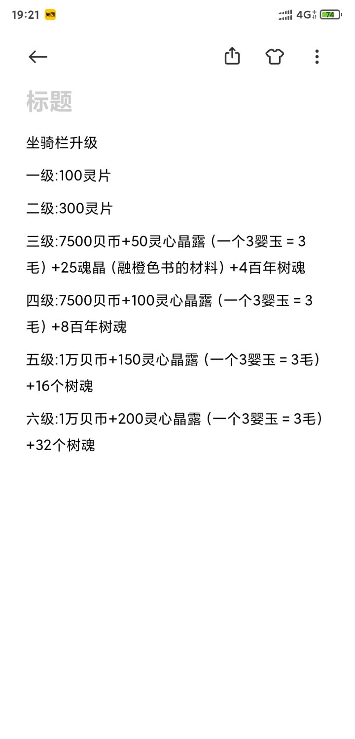 坐骑栏升级材料总览总结:可以白嫖两级,四个格子。剩下的性价比不是那么高。氪佬,收藏党请拉满。