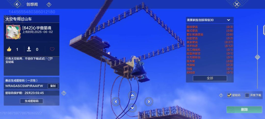 提取码:WRAGASCSMPIRAAIFW 有人要试试太空过山车蓝图吗。通天梯#妄想山海 #妄想山海家园 #妄想肝海bug