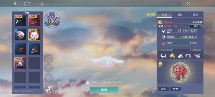 三万年兔子进化成五万年兔子之后外形就变了,赶紧修复一下吧。宠物界面看是正常的召唤出来就变了。