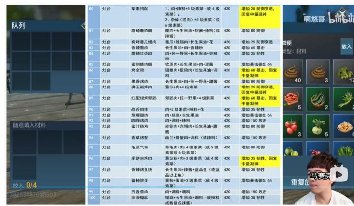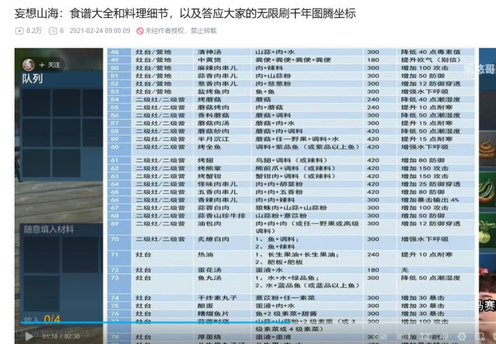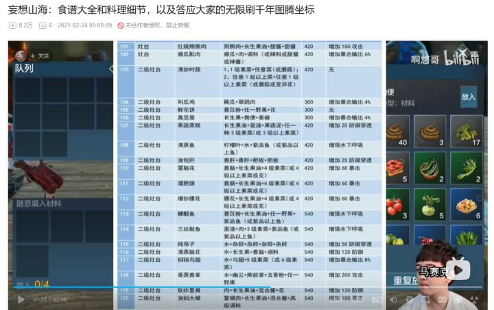 图片是我截图某个大侠分享出来的各种食谱。我们在使用灶台的时候,只有煮过的,和没煮过(创意)的分类。贵公司运营方朋友,有机会不妨玩玩《星球重启》,里面关于烹饪,他们做得很细分。同样是有一个灶台,打开后,食谱会按以下区分:个人能力(+攻击力、防御了、暴击力等)功能菜谱生活功能(采集、挖矿、钓鱼、淘金等影响的)菜谱特殊功能(耐热耐寒抗风沙等功能)菜谱。等等。因为山海经里现收录的食谱菜式,