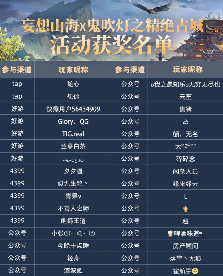 活动开奖丨妄想山海x鬼吹灯之精绝古城活动获奖公告