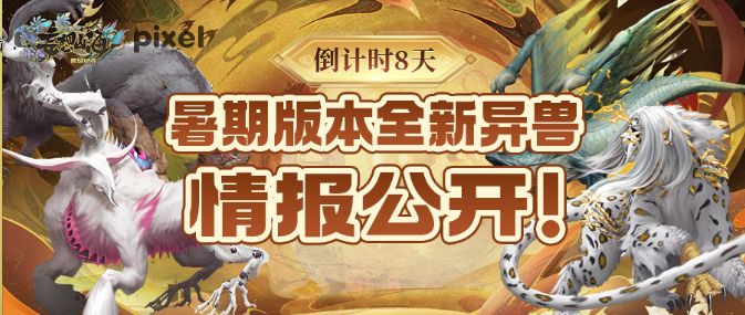 距离710暑期大版本上线还有8天本次暑期版本将推出六只各具特色的全新异兽目前部分新异兽的情报现已公开! 注:以下技能以五万年为例具体效果请以正式服为准 凌铄·诸犍jiān 凌铄·诸犍技能诸犍部分技能展示诸犍骑乘技能展示 冲炎·䟣chù踢 冲炎·䟣chù踢技能䟣踢部分技能展示 苍莽·䍶䍶dòng 苍莽·䍶䍶dòng技能䍶䍶战斗技能展示 飒踏·鯥lù 飒踏·鯥