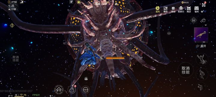 前天开始下回来玩的,我一直不明了天上的像章鱼怪到底是什么,然后花了几十分钟时间到了太空看见了“它”的全貌当我靠近“它”的时候我的耳边传来了古神的低语🌚,我用我仅存的理智与“它”做着斗争,当然这些都是🦐说的,我发现这怪“脑袋里有建筑,”我进去了就出不来了,飞天锁还浪费一大堆耐久最后只好用“垫基地”的办法垫出去的,当然了地基我都回收了😅