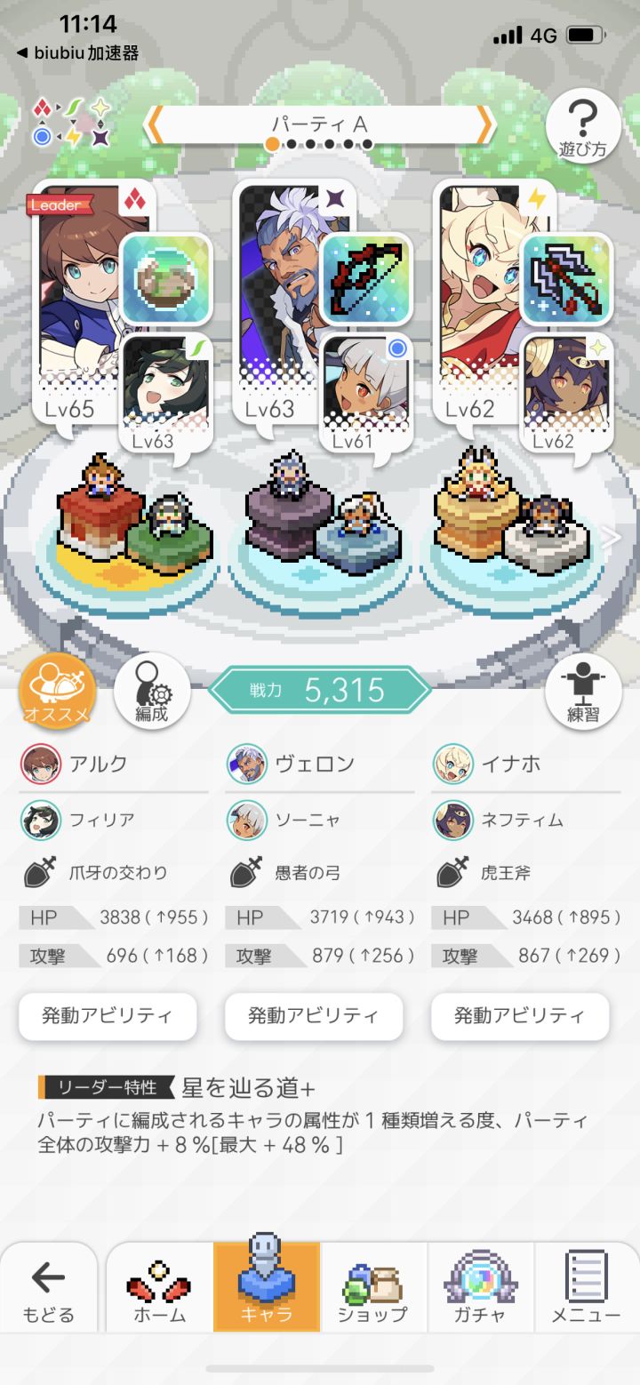 也没有什么思路和流派了,主要就是给懒人用的,队长主角没得挑,其他位置就各系最强一人,主要还是辅助都随意。虽然看上去加成没有单系强,但是因为每个单体强度都可以,所以输出都还看得过去。技能搭配也未必要看加成,看行动模式来追求多次命中也是不错的选择。这个队伍的好处是不会被克制,输出比较稳定,打大蛇有奇效!我均等55的时候打大蛇,比两个单系均等75的队友多打一倍伤害。打其他的本输出自然是没有单系克制打的