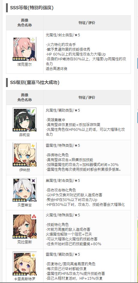 world flipper 弹射世界 现有5星角色稀有度排名