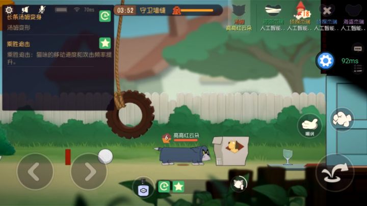 快节奏游戏时间,猫和老鼠一把10分钟结束,我觉得这个很赞。手机端游戏本来就是比较碎片化的。第五人格相对来说更久一点,不是很习惯。还有一个就是地图更小一点上手程度高。