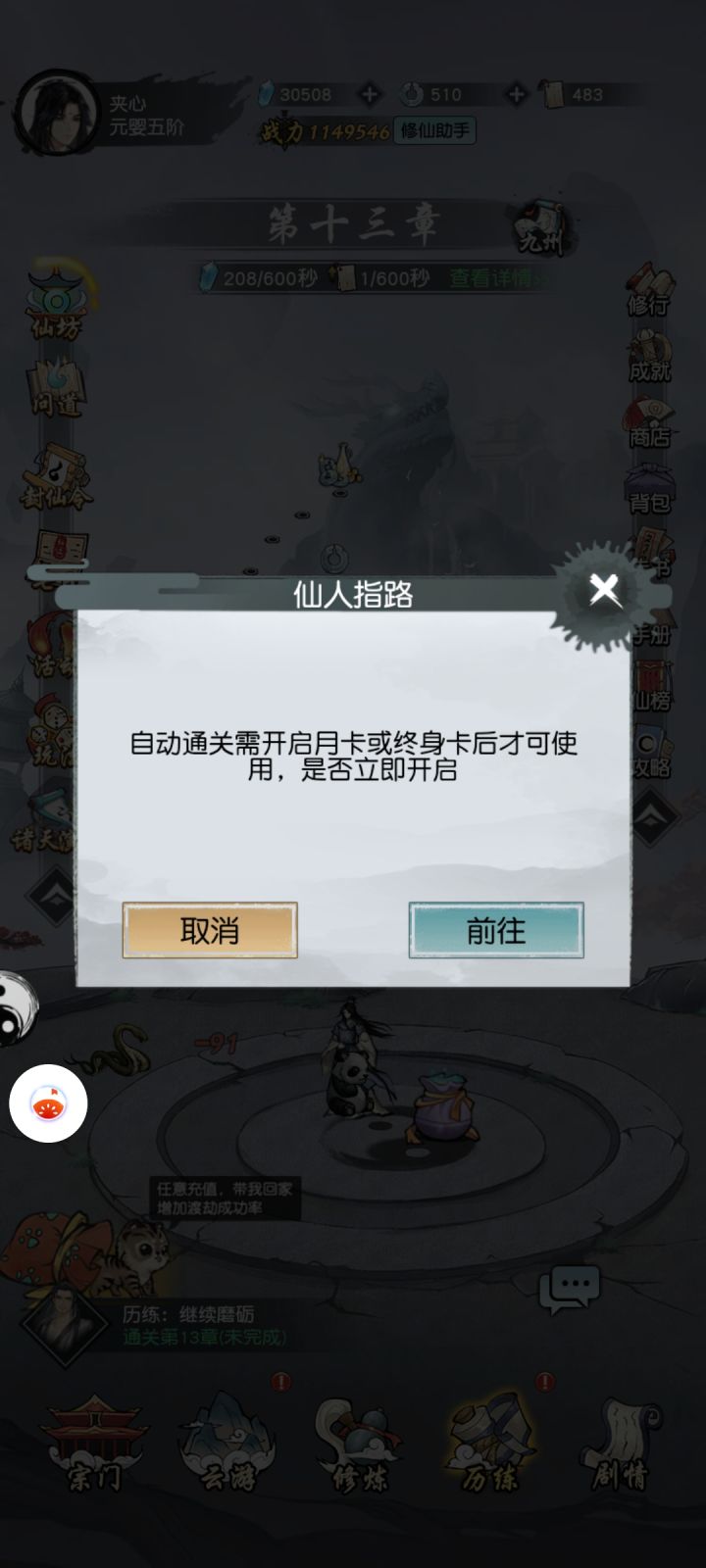 本人也玩了好几代的“以仙”了,总归也看着以仙公测了,虽然还有许多需要改进的地方,但从我的角度出发,以仙确实有在改变,现在以仙也公测了,肯定有人会比较喜欢这类半单机类型的游戏。目前在新区也算混的不错。所以我给大家做了一个毕竟基础的攻略首先是修为方面:①突破方面:肯定有许许多多的都在为丹药不够发愁,我在此先提个醒,游戏前期渡劫丹药的获取肯定是有难度的,目前已知的获取途径就是药园种药炼丹、过关、开