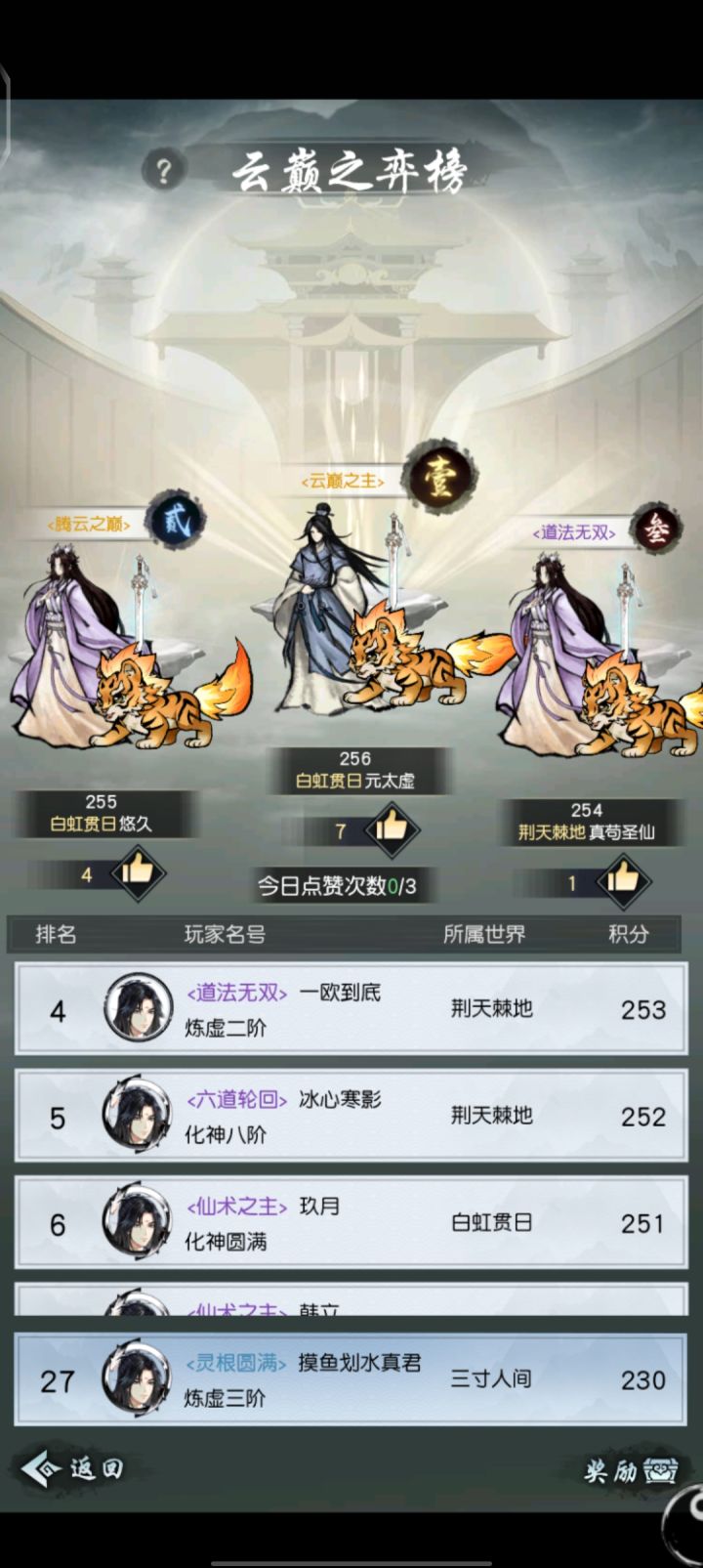 历练排名榜的奖励