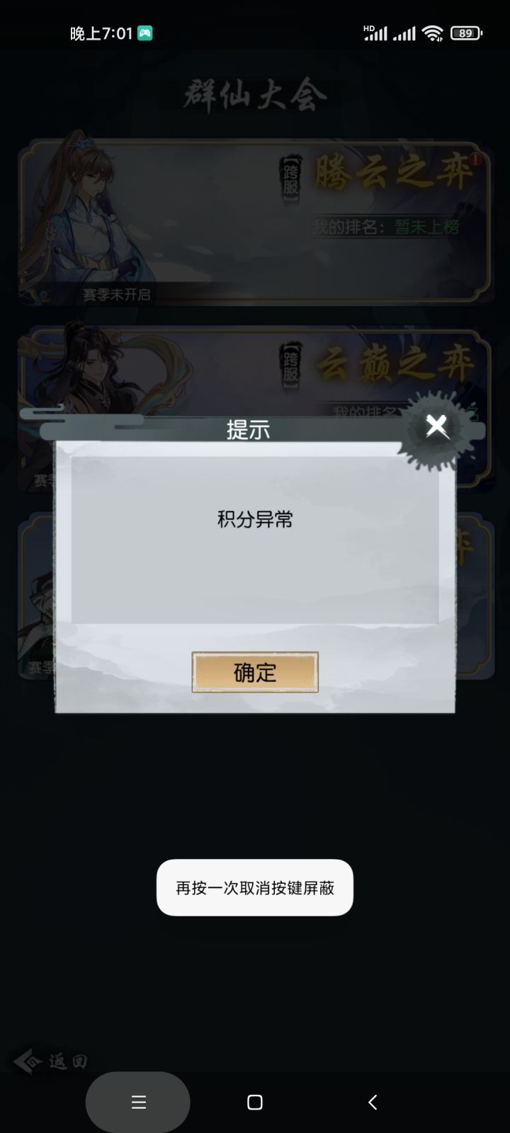 BUG了官方进来一下群仙大会积分异常进也进不去