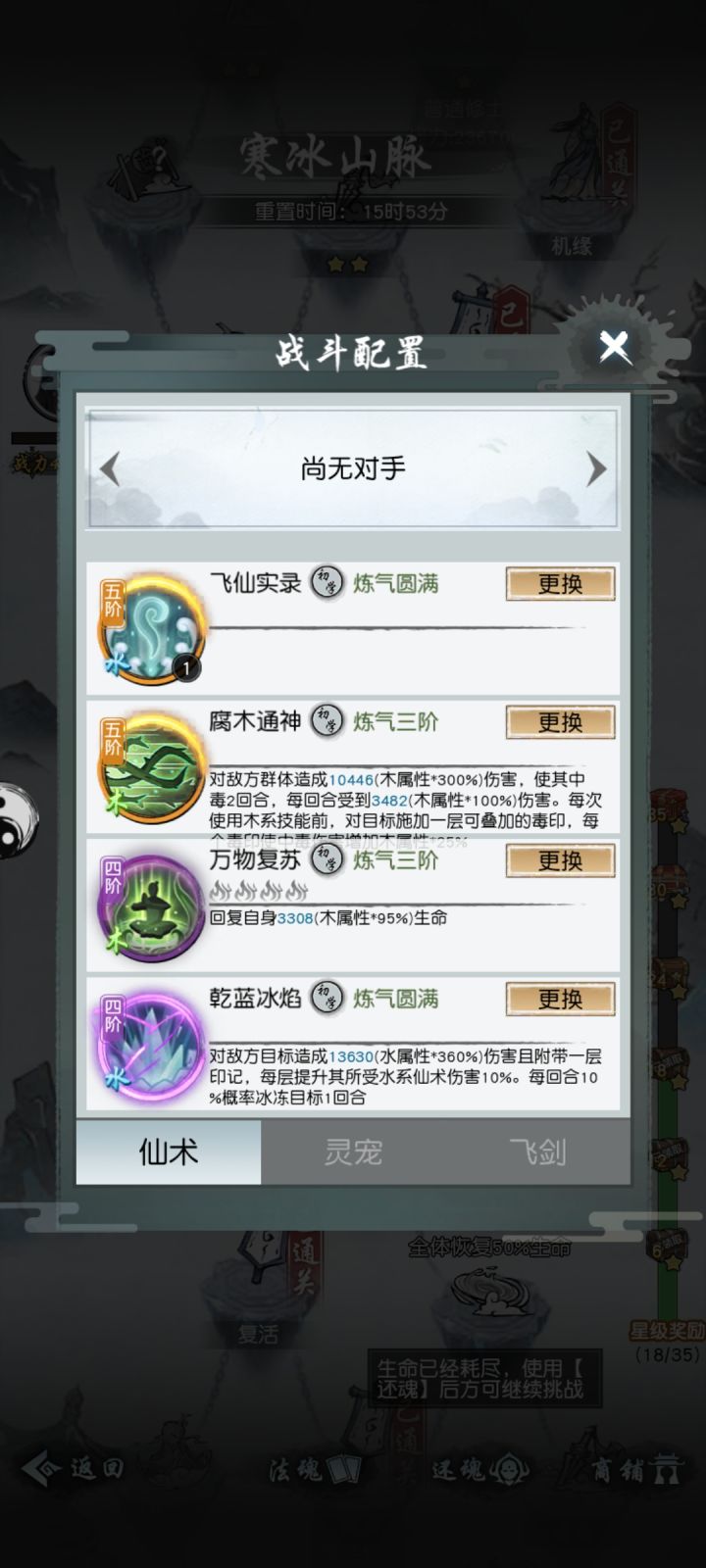 这秘境挑战开出个金色的仙术,装备上去一用就死,换还换不了,真就飞升了