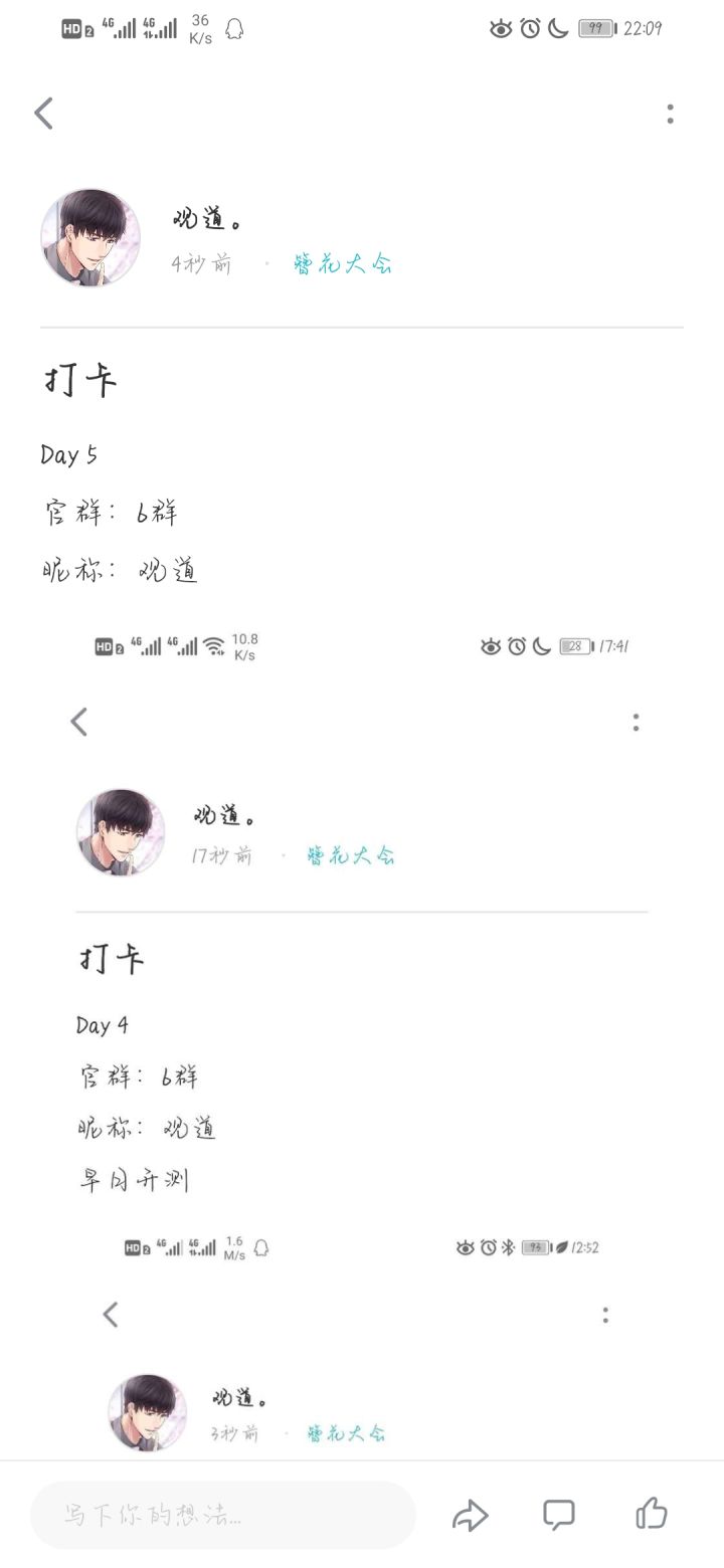 打卡天数:第十天 名字:长命无绝衰 所在群:6 这几天都在考试,今天!就考完啦加油!!╮(﹀_﹀)╭现在发因为要通宵!!明天考完睡过去就不好了(●°u°●) 」
