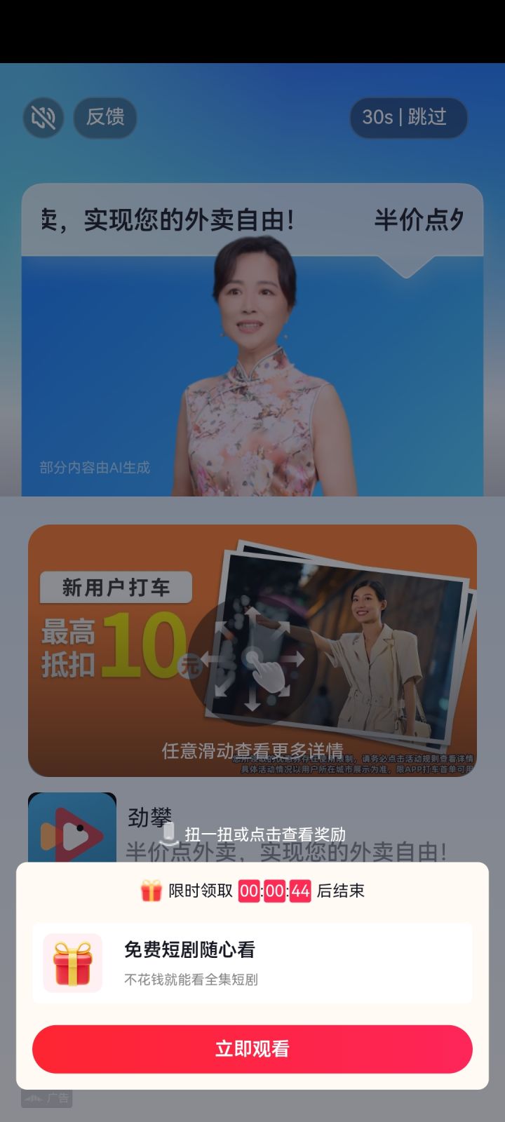 这个广告,下边的窗口跳出来以后,就关不掉了,整个广告也关不掉,不管点哪里都会跳转到别的应用,要不只能等时间结束,强制看完整个广告