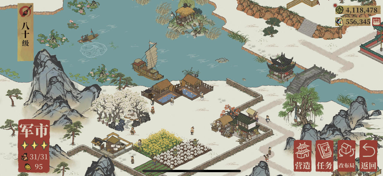 1.4.1版本优化:1.4.2版本优化:新增松江特有建筑【哨塔】,将哨塔放在北仓城旁边可以不再触发周六的倭寇入侵事件在【营造】-【娱乐】中找到【哨塔】即可建造。注意:需要将哨塔贴着北仓城放才能产生保护效果。徐光启剧情回顾:1.仓城内部是一个16格的棋盘,每个格子上都有不同的【物资】或【事件】2.倭寇已开始掠夺物资,棋盘右方可以查看倭寇占领该区域所需时间3.【据点】是倭寇主要抢夺的目