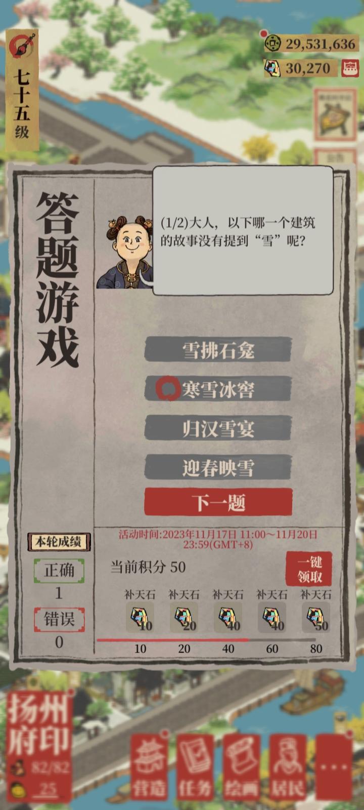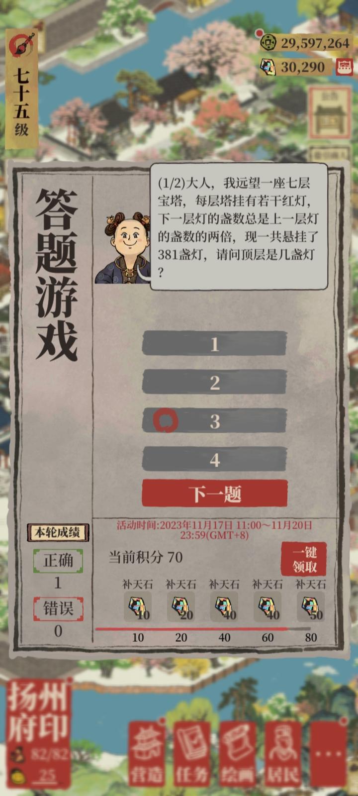 杭州开了商栈,团扇交易最赚钱,五个特产交易,一天入账50万铜币+,想想,美好不?有人问了,制作团扇够吗?一天一万个团扇,放心,绝对够!首先杭州人口要大于80+,建立10个团扇作坊,人物制作产量要+40%以上,4小时一次,1400×10×1.4=1960个,实际上我10个作坊产出有2200+,一次挂机算4个小时,一天5次,产出11000+团扇。农牧选+40%的人物开工,小蛮是种竹林性价比最好的一个,