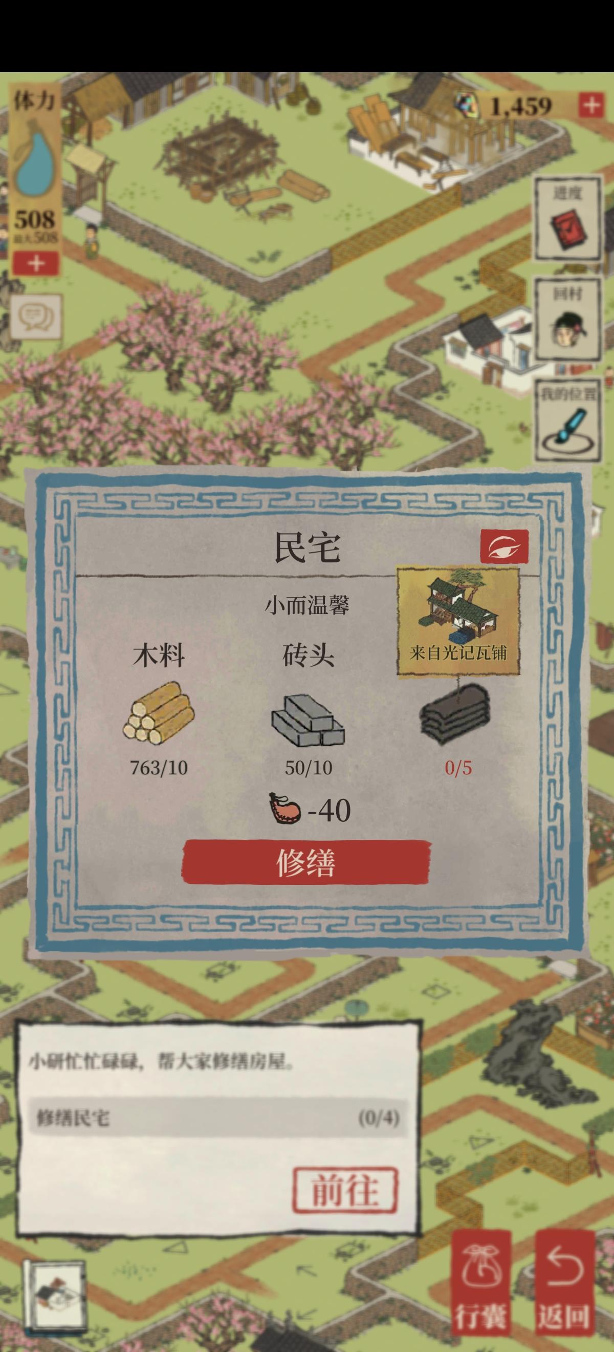 无语桃花村。白天瓦铺点不进去。晚上打开有更新,再进桃花村,瓦铺可以进了,瓦片制作好了,房子修不了。。。。。我很无语=_=