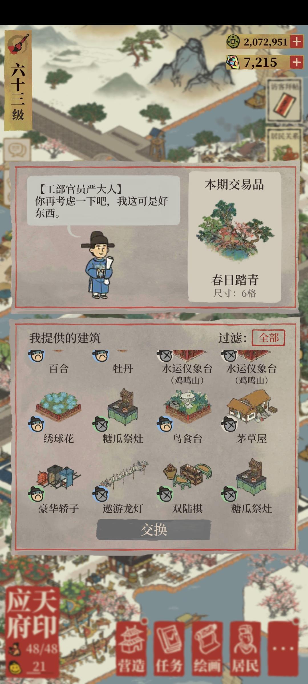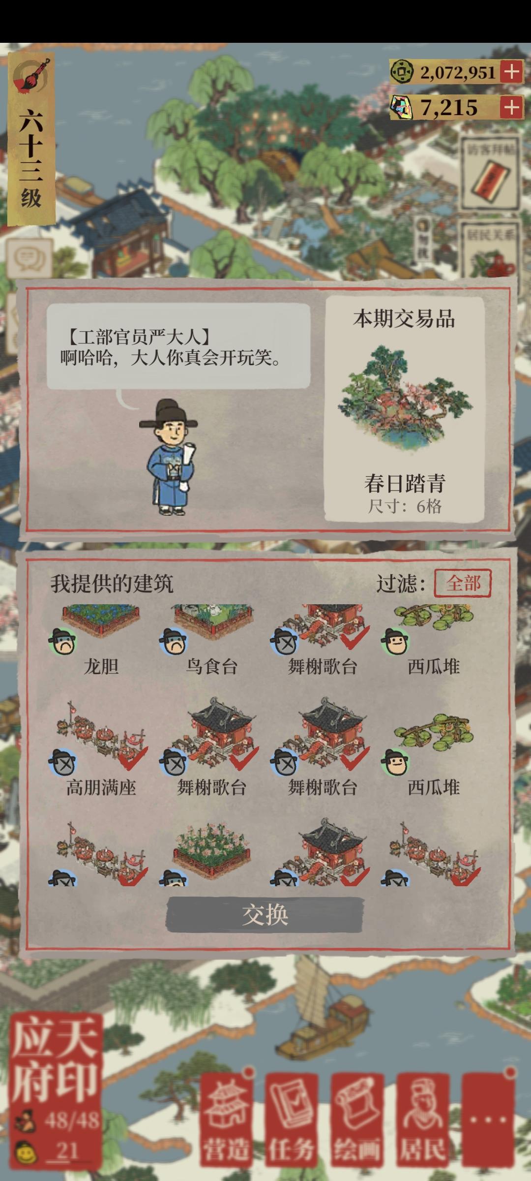 就没有严大人看上的东西了呗,我不喜欢的你也不喜欢,就喜欢我喜欢的建筑么?舞榭歌台又不好布局还给我这么多,合着是严大人不要才给我的呗?😅😅😅🙄