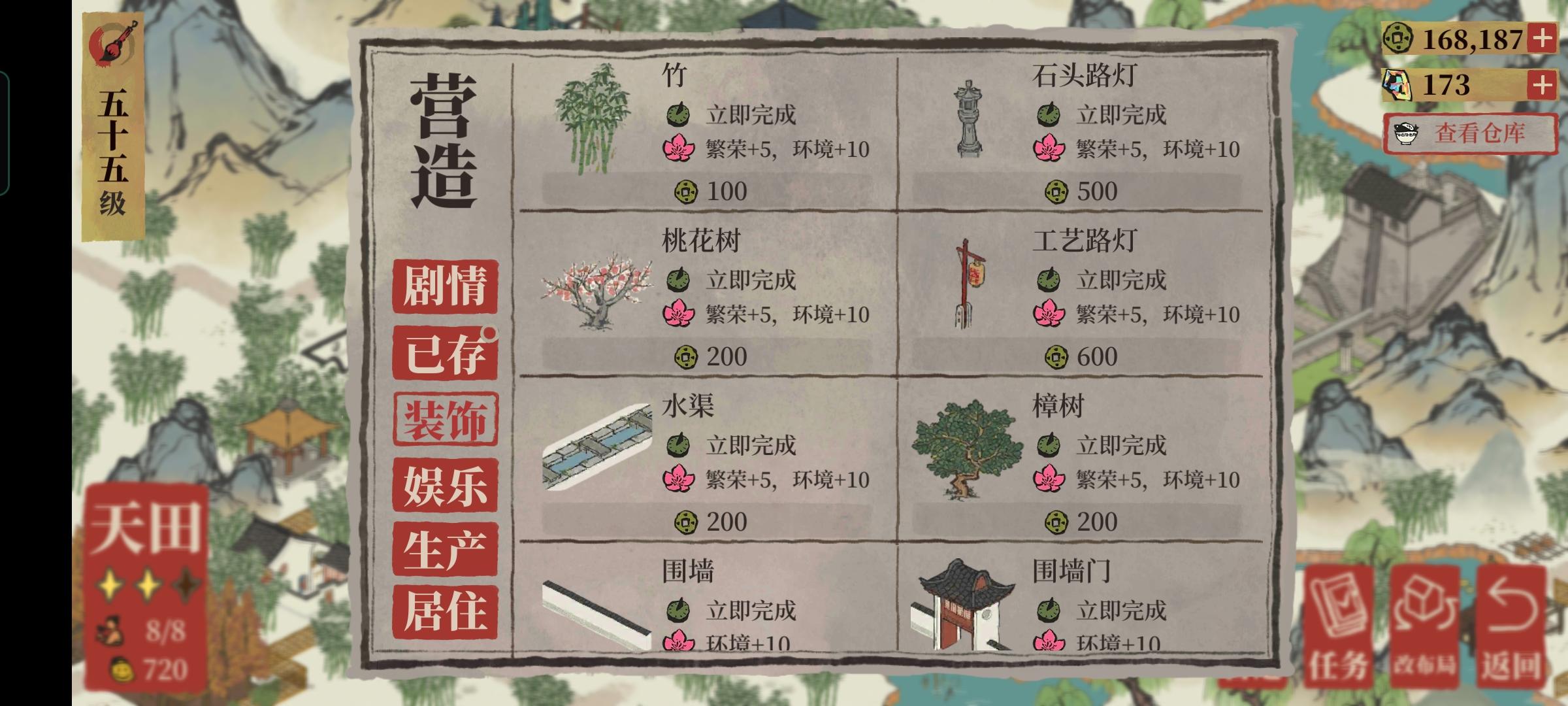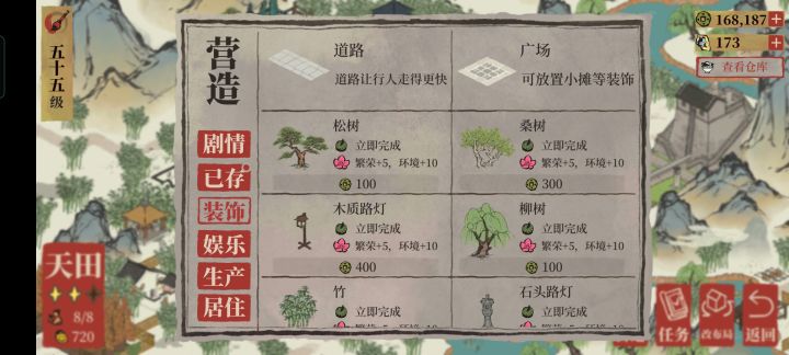 强烈建议宗祠范围和声望的扩大上升机制简化,升得太慢了,范围也远远不够我布置的。不喜欢建筑都挤作一团。进度太慢就不想玩了😟