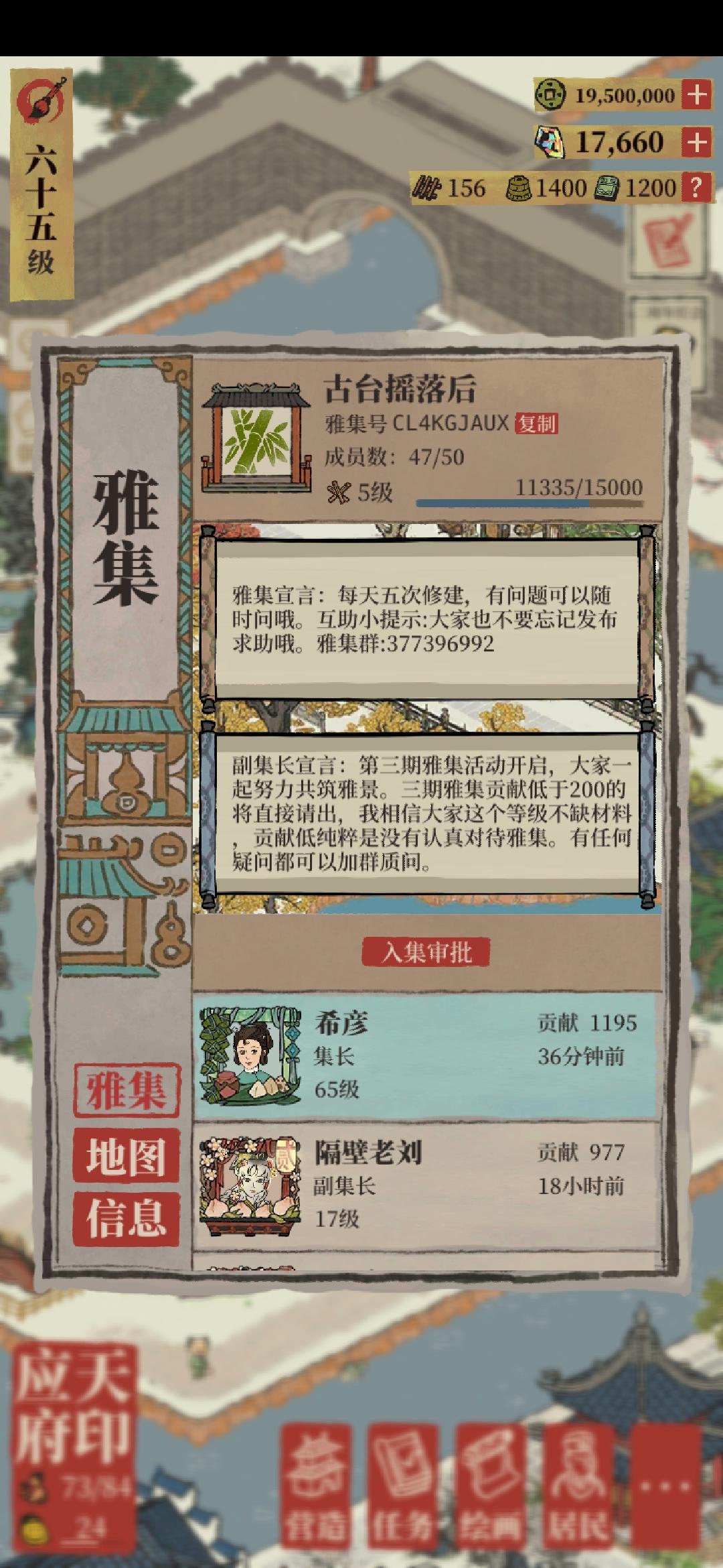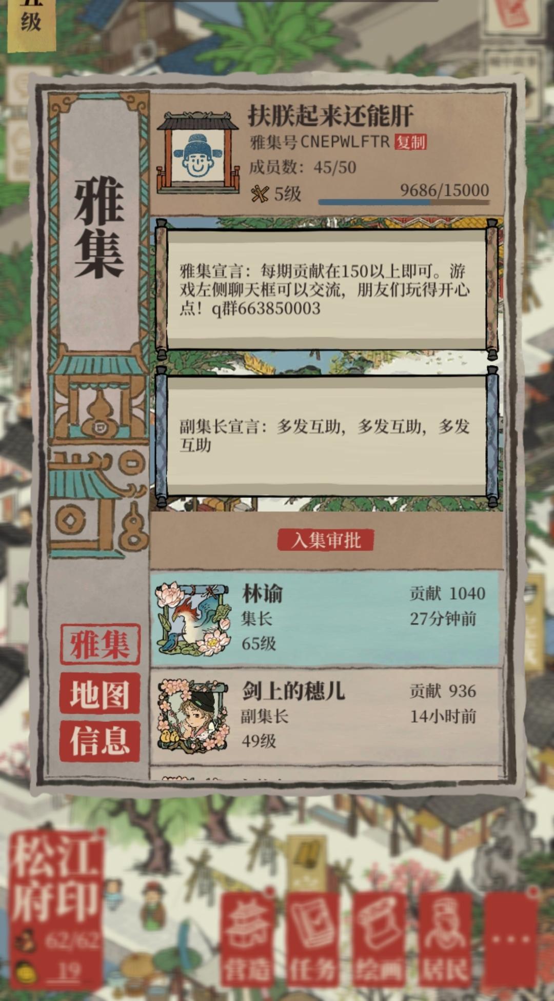 江南百景图QQ群:知府交流群,一站式解决游戏遇到的问题,群里人才济济,壁纸、头像、各种攻略、布局抄作业、吐槽、第一时间卡BUG分享!聊天,吃瓜!等等。人多力量大,冲刺满员,江百铁粉快点来吧。