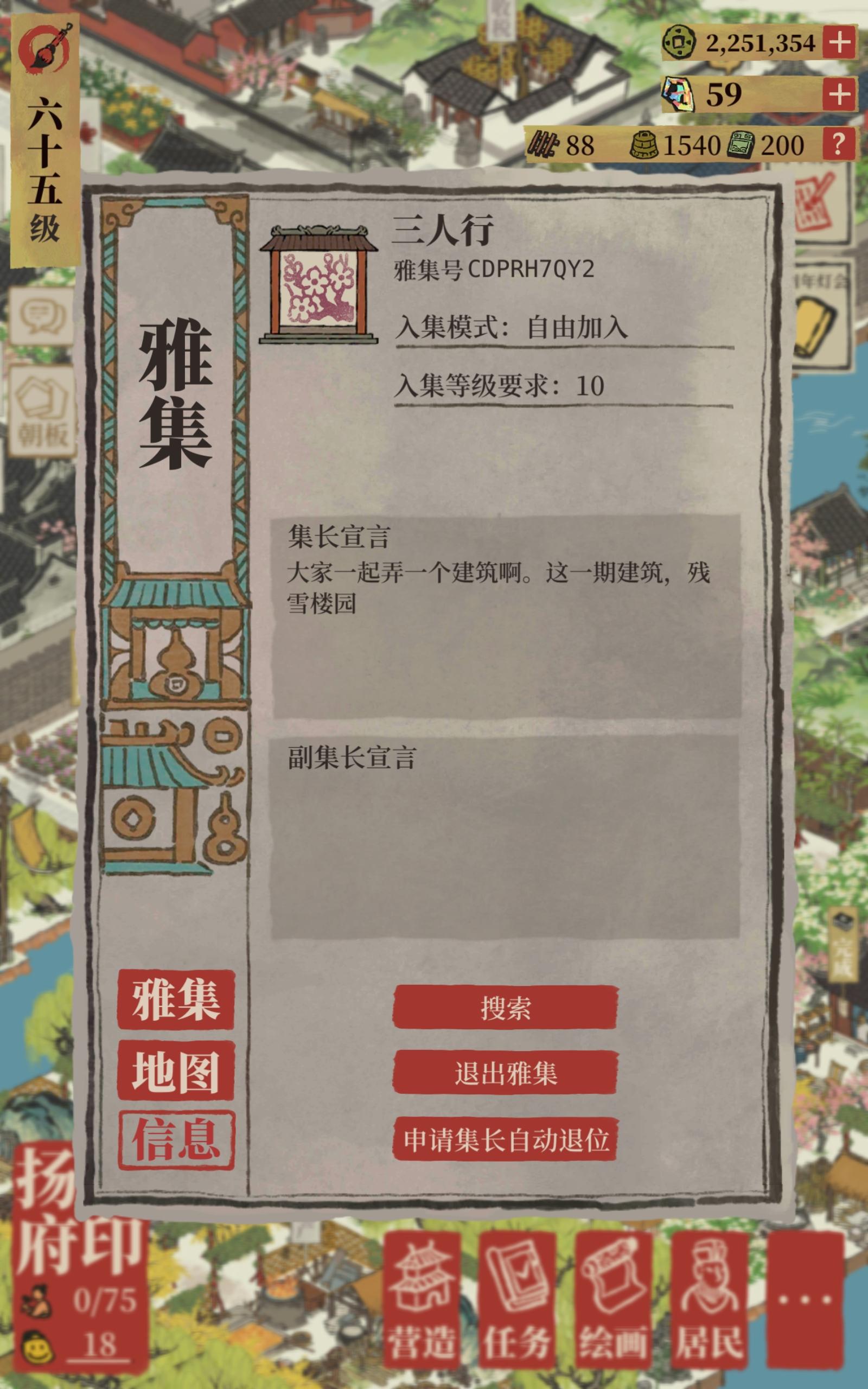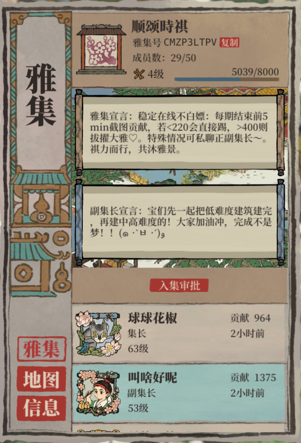 旨在组建高质量布局交流群,欢迎各位对布局兴趣高的玩家加入,群里大家可以讨论布局思路心得,探险攻略避坑,桃花村组长期固定队,活动奖励提醒等等。群里有知府共享相册,收录大家网上搜集的大神布局;而且不定期还有布局评选活动,激发布局灵感。