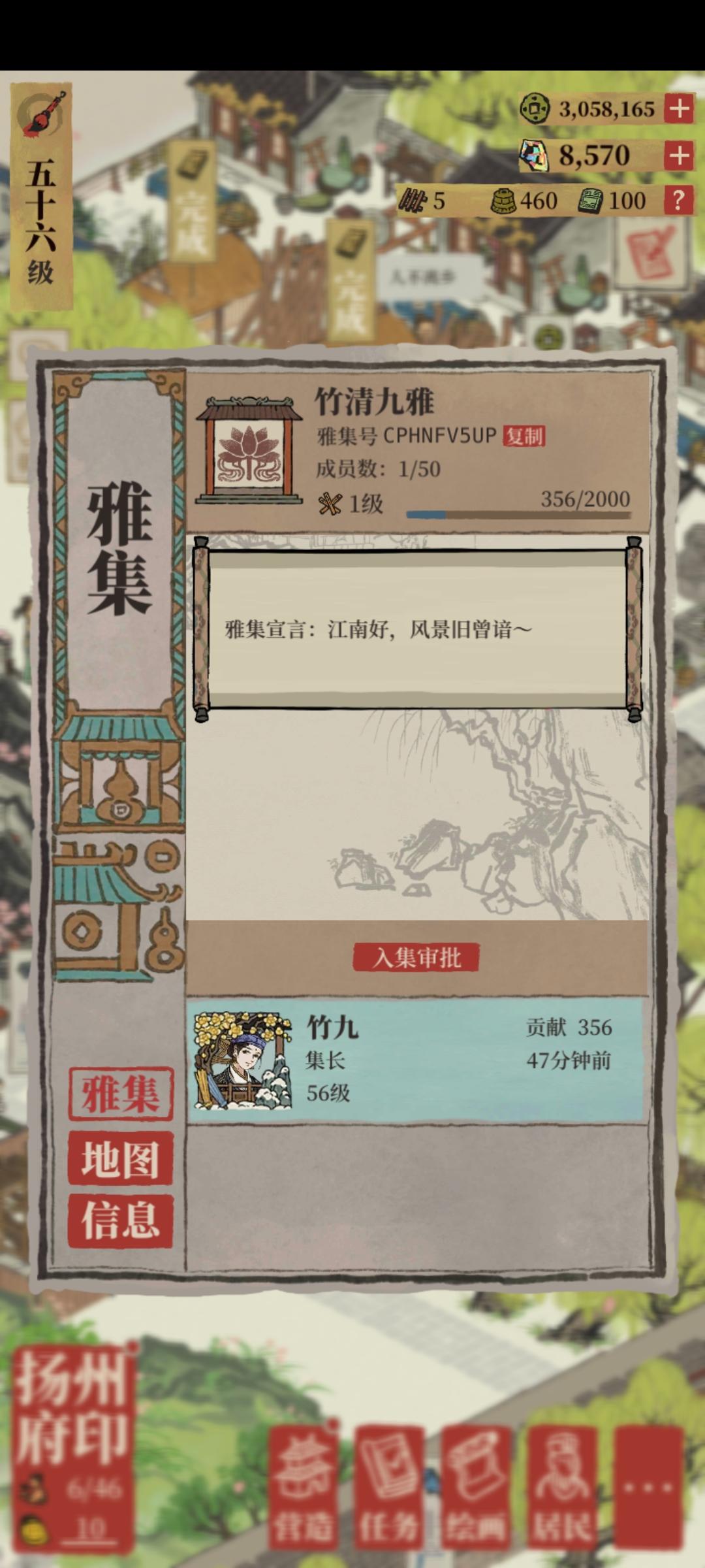 雅集招人啦!!快来呀朋友们😘😘雅集编号:CJLNULRM9 招募宣言:常上线不白嫖,一起努力拿到奖励(具体见图哦)注意事项:每期贡献值能达到350以上,拒绝白嫖,不要求花补天石,0贡献值结算前清人哦!