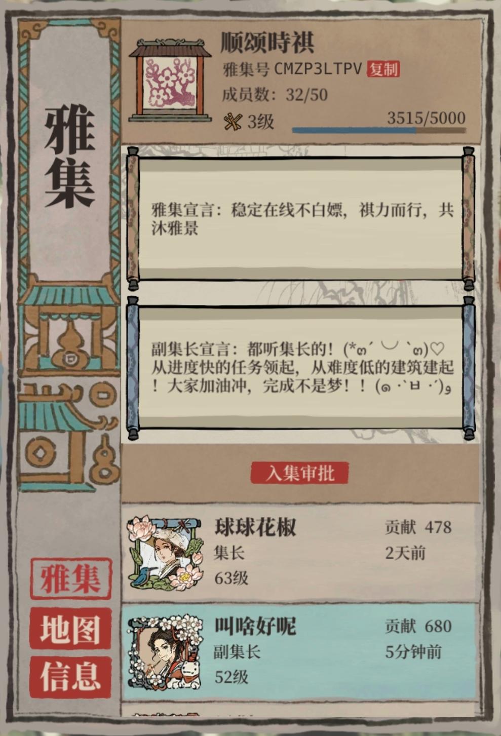 雅集招人,自由加入!贡献最好60+/天,拒绝白嫖,0贡献值结算前清人!雅集编号:CMZP3LTPV雅集名称:顺颂時祺招募宣言:稳定在线不白嫖,祺力而行,共沐雅景(具体见图)