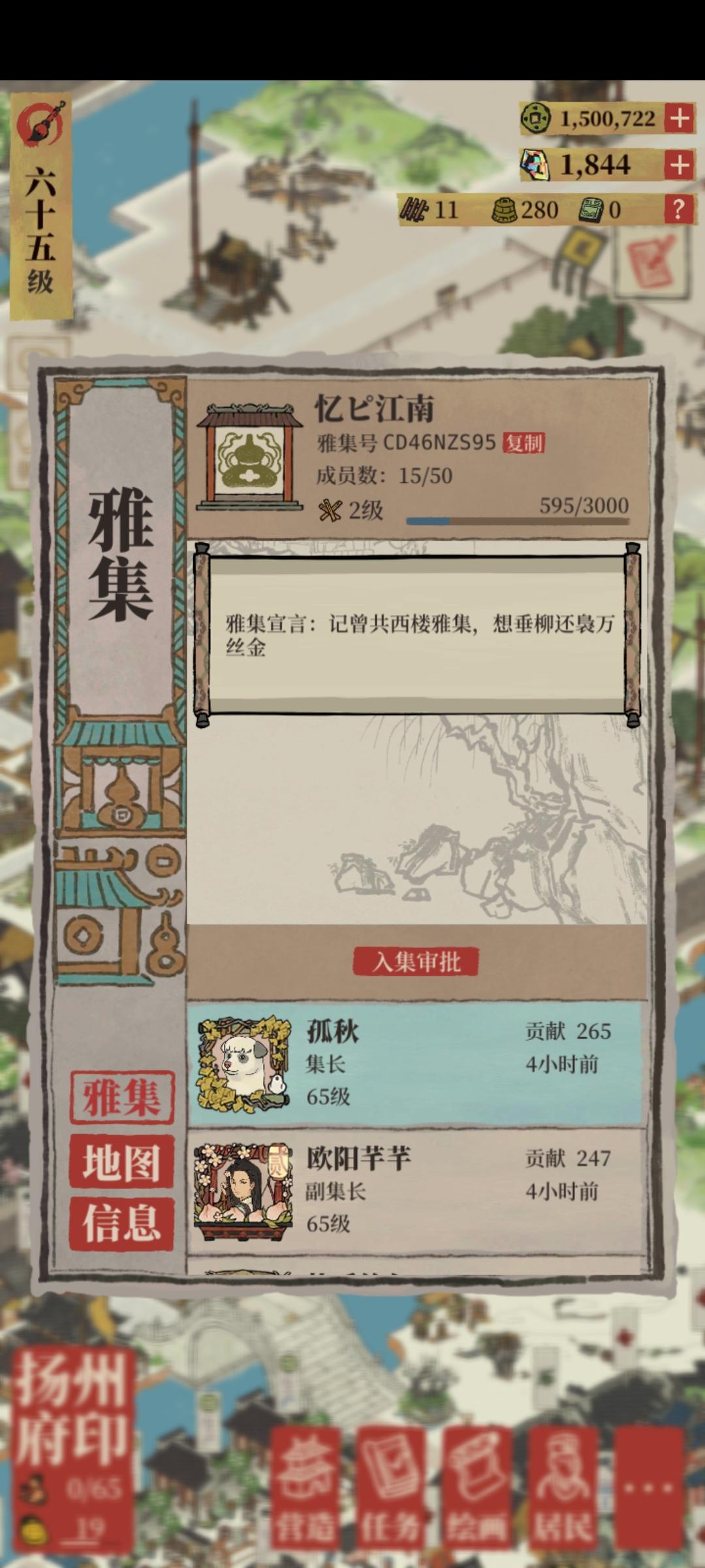 佛系雅集招人,可躺可肝全凭自己心情,需要材料可以发互助,贡献值没有硬性要求,招人主要为了列表看着热闹雅集号 C2VAL5JLA图文无关,蹭篇幅的