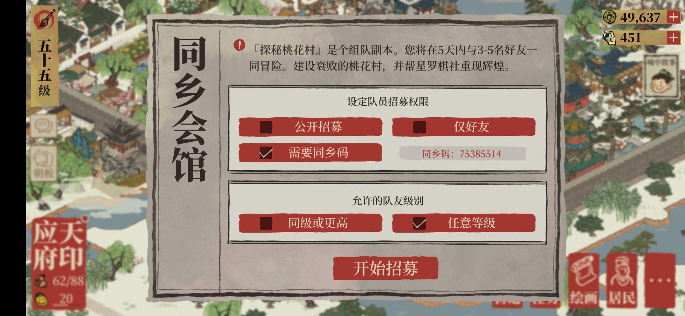 桃花村缺人开启 我天天活跃 来人可摸鱼 建设任务可我一个人做 只求组队开始