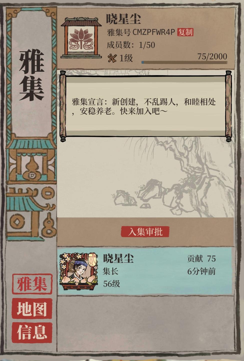 1级雅集CK68F9VCE ,10级自由加入,本年度无任务要求。集长备考中,目前建设停滞。计划上岸后摸索制度,立贴为证(一定)。
