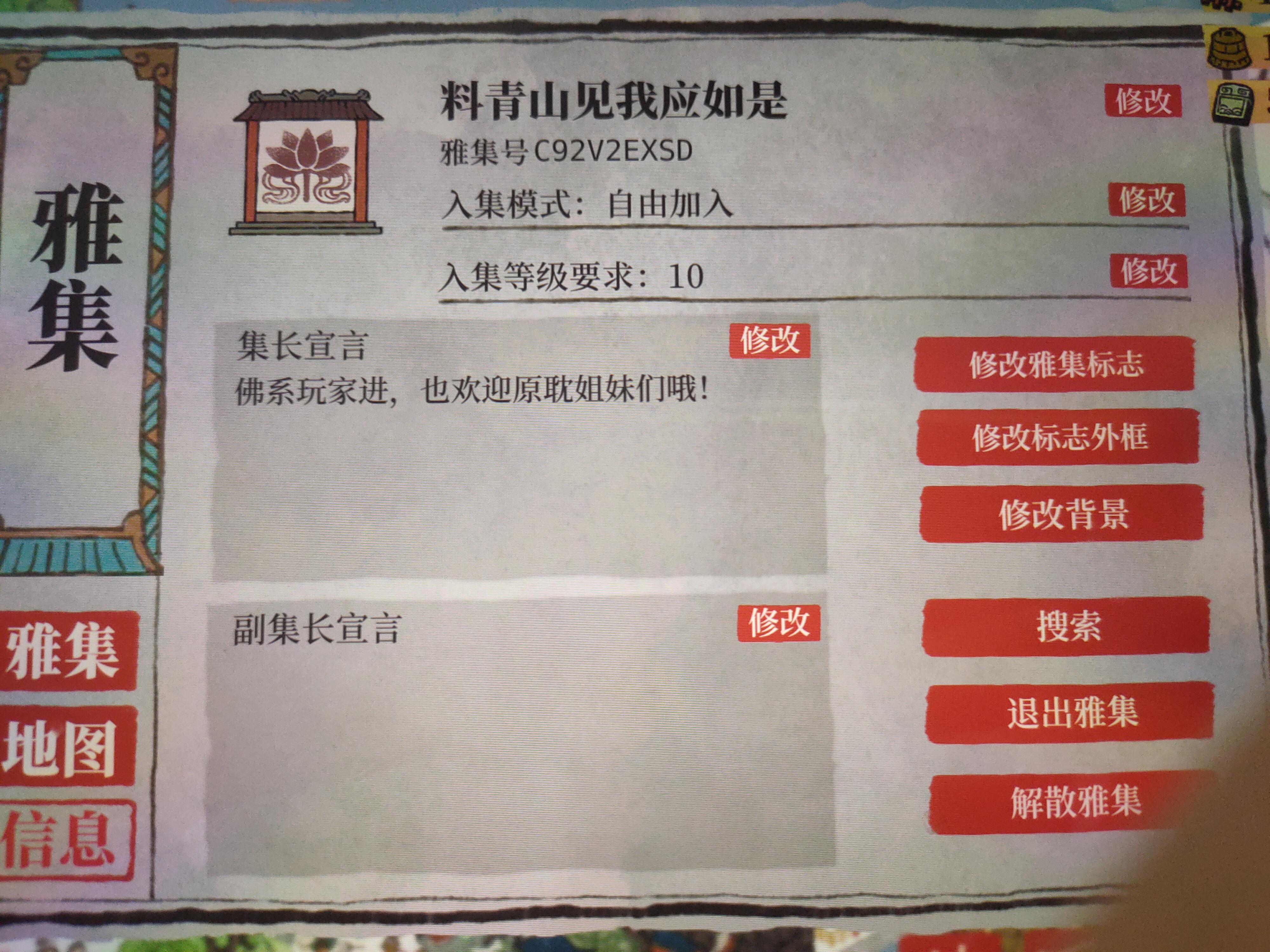 陶然雅会招人啦,欢迎各位官老爷加入雅会雅集号附上:CKJW84QUP一起建设,一起成长,一起造房子鸭~!自由加入,没什么要求,每天都有5个任务贡献哦,不要求全部做完,多少都可以哦,有就行了!!!~来啊~欢迎大家一起玩啊~~