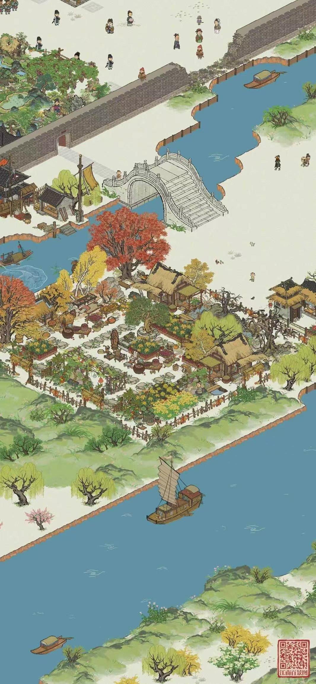 一条可以自己调节长短的小溪流(想要多长就铺多长的人工湖)然后在溪边种满小草与大树可以作为两块布局之间的过渡(也可以说 这个有点类似于城市公园中的一部分) #江南百景图 #江南百景图扬州府 #江南百景图布局