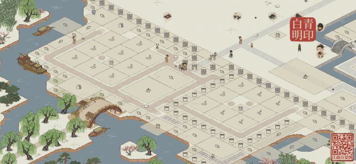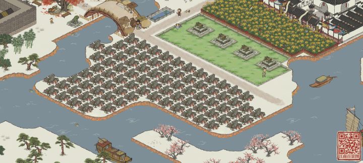 我在秋千边的布局本来就是放了几回闻音阁和妆镜台围成的小花园,原先的设想是给扬州府姑娘和小姐们来此处游春雅集的,因此还特地把围墙给补好了——姑娘们怎么能随便让跑漕运的粗人们瞧了去!但是这也实在是这块地的硬伤,前面接着钞关,隔壁就是漕运码头,人来车往,喧闹非常,实在是不够雅致呀,看着不像。改成教坊司的灵感来自@芥末1761的教坊司布局,把这儿改成教坊司那不是正好了嘛,就是怕不够热闹,越热闹越好!哈