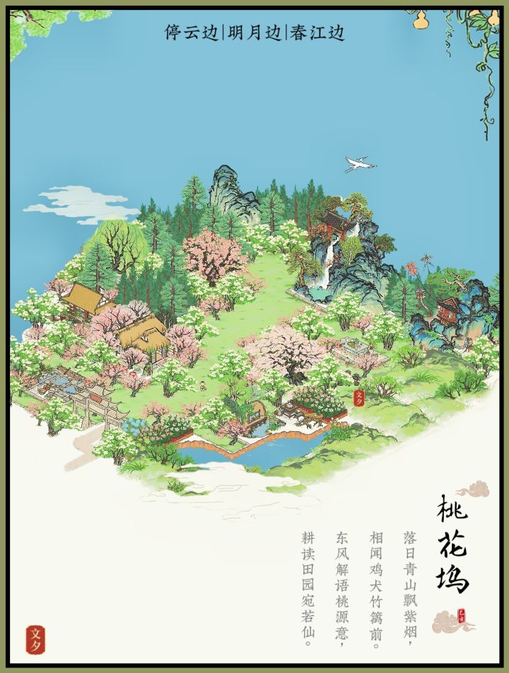 【扬州府布局】停云边 | 明月边 | 春江边🍃“落日青山飘紫烟,相闻鸡犬竹篱前。东风解语桃源意,耕读田园宛若仙”-------------------