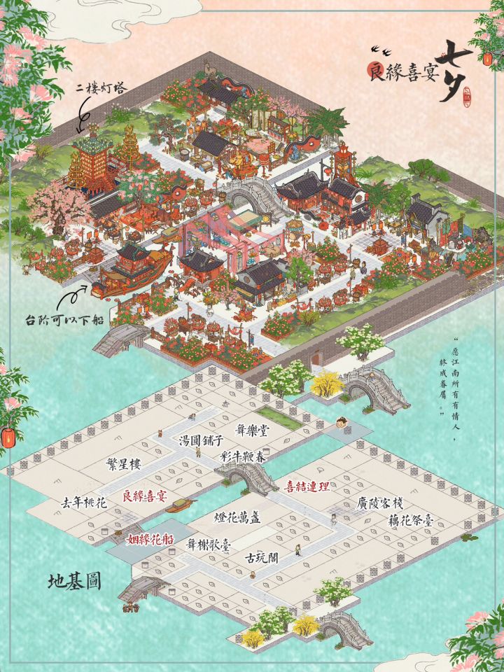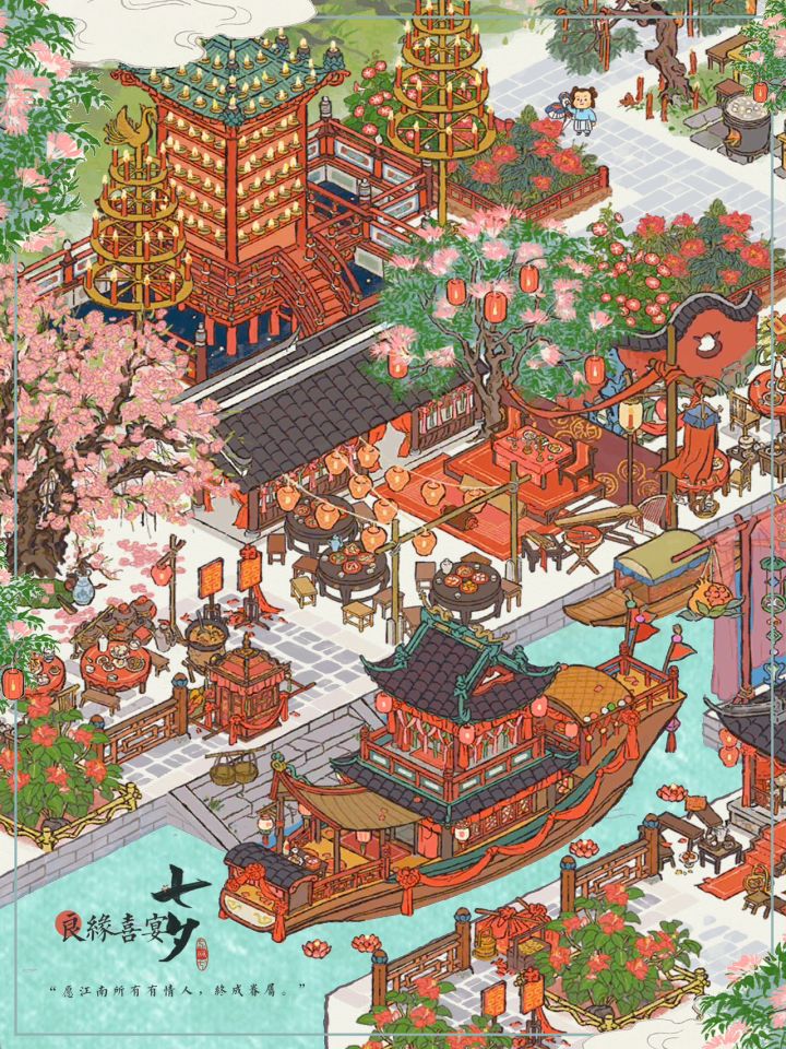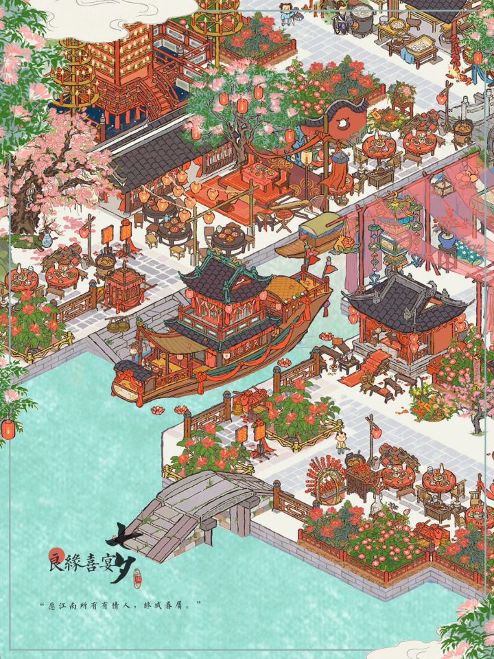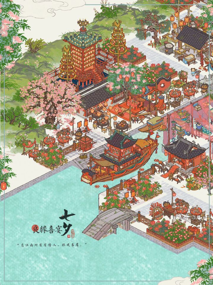 🥀良缘喜宴|七夕江南百景图(有地基)💕婚礼建筑画池|9张图学会七夕良缘喜宴布局✨主要建筑:良缘喜宴、喜结连理、舞榭歌台、高朋满座、灯花万盏、去年桃花、舞乐堂、古玩阁、广陵客栈、汤圆铺子