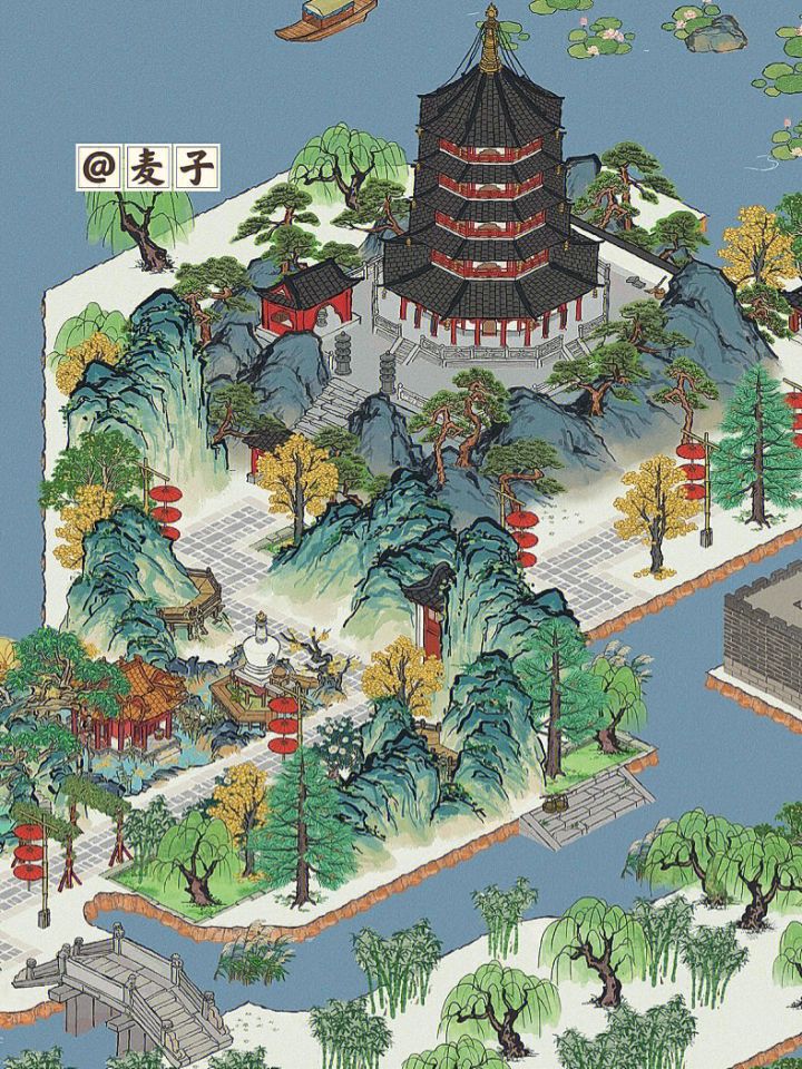 最近在为了杭州布局头秃,本来初衷是想在雷峰塔下搭一个白素贞小院(坏小青在雷峰塔的右侧偏苑陪着白蛇,许宣在园林外开保安堂。搭完是很喜欢这个小院搭配,但总觉得民宅放在雷峰塔山脚入口处有点点突兀 ~“~所以先把小院搬到中心岛扩建,白素贞移到原本预备给小青的偏苑,雷峰塔山脚的入口处是想抄微博大佬的作业【图四的麦子大佬】。暂定许宣跟小青一起守在保安堂小院保安堂小院还在继续头秃中 先纪录下目前杭州