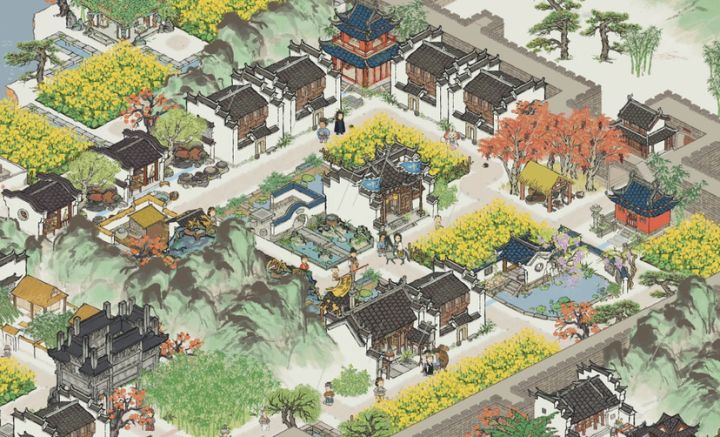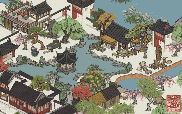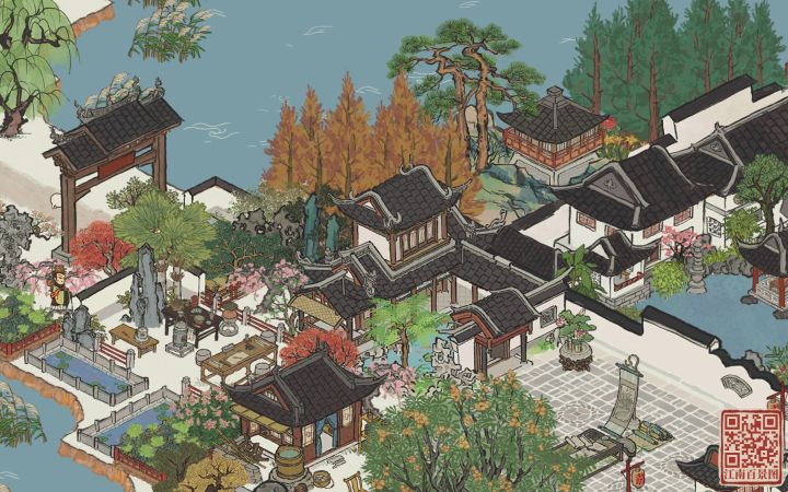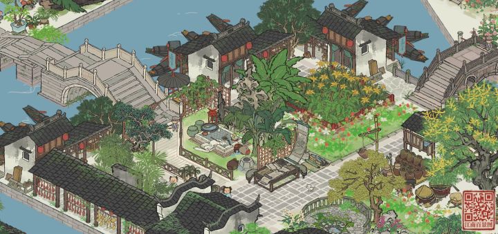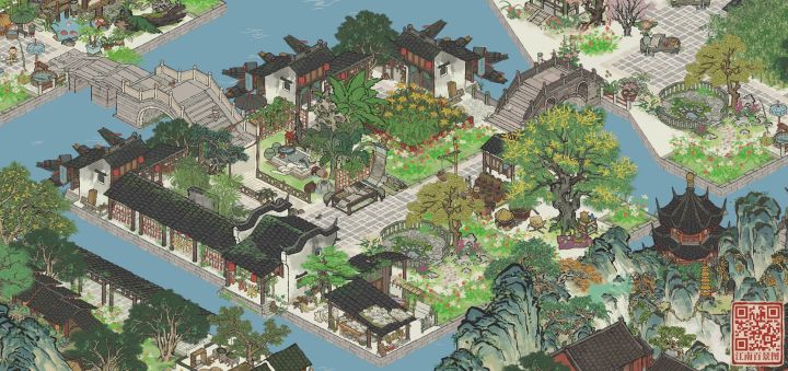 将东园作为知府豪华私邸的一部分。枇杷坞为前院,有读书和活动用的广场,乘凉的枇杷树,芭蕉坞东园为中院,古色古香的围湖长廊,香樟坞为后院,逛累了可以在后院歇息。每个小区域都是一处风景,细节max,高低有致,配色上也采用多色混搭,布局适当留白,三个院子自成一体。最大的优点是用的建筑都比较平价,还能融入一些生产建筑