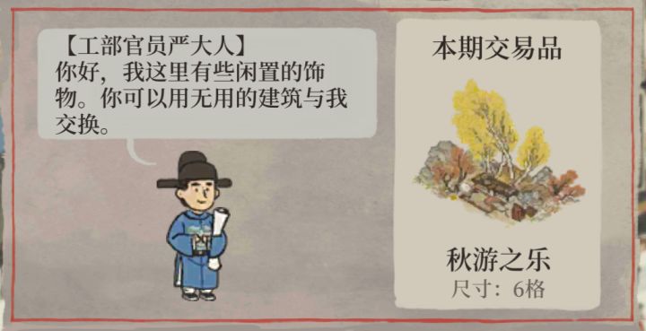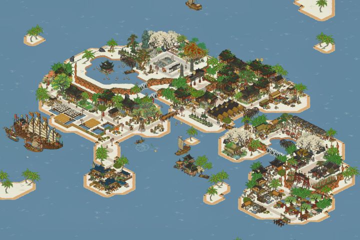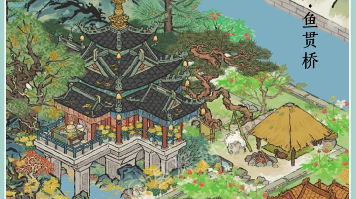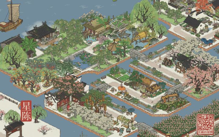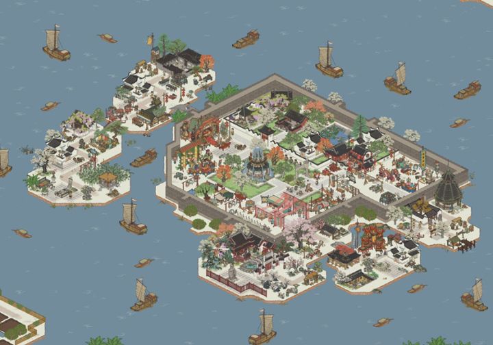 本次布局主题主打集市摊贩,无生产摆放,纯娱乐建筑进行摆设,全图仅5幢民宅,全局展示:【橘黄岛】【蟹居岛】:李星罗住所,摆放有玲珑棋局,蕉叶覆梦用以对弈交谈。【积翠岛】&【观鹤岛】:主打庆典节日气氛,以飞泉亭为广场中心,周围摆放三星灯,醮祭大典以红色为主要颜色,展现热闹市集场景。【长寿岛】设计为万千山和千暮雪两人的婚房,摆放喜结连理等婚庆相关建筑。【南星岛】【学宫岛】崇明学宫所在地,多摆