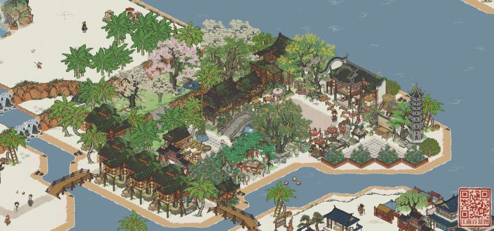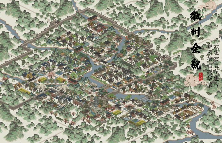 徽州全貌,下面是部分成果展这是徽州特有的建筑,我全套组合建造,搭配三种颜色的树对称轴设计!这是全地图,徽州2.0下面是各个分区完整版区曲径通幽处政府办区,这是家祠区,这里用到的建筑都是稀有建筑,思路是蜿蜒曲折,有层次感!为闲人集中建造住所! 这是长庆寺,我用补天石加快速度建造完成的,为了提前给他大家看看,主要是建筑都是庙宇相关建筑,河边边上是今天限时探险任务奖励的椰树小岛,其他的是家