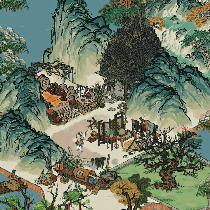 吉祥长廊搭配小tips:①和烟雨枕水道搭配,水域相通②和香满琼楼/芭蕉庭院/越瓷铺子完美衔接嗷
