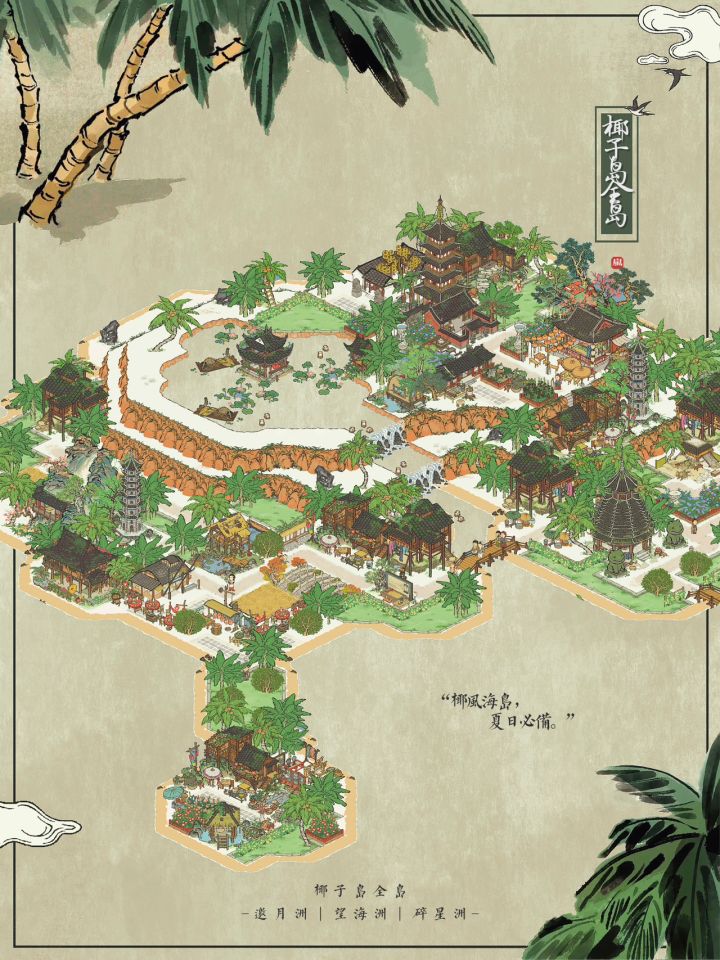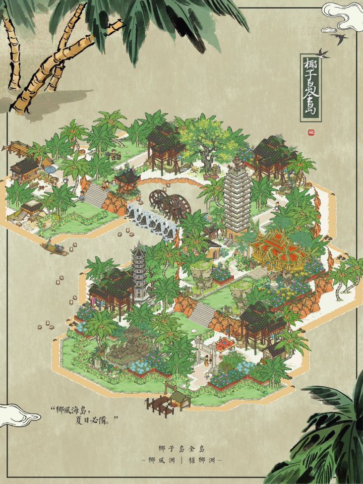 🍃奇迹懒懒环游江南系列又来啦~✨🌴这次我们要游览的是椰子岛全岛:🥥从羽翼仙访问我的『岚的小岛』:C76E9SVZZ🌴椰风洲|植椰洲✨上岛首先看到的是曦和雕像,参观完雕像后上山是梵住寺,可以在这里拍照打卡📷🌴椰影洲|摇曳洲✨过桥之后是议事鼓楼,通常居民们都在这里聚会或者讨论。👀听说摇曳洲有一农家酿酒一绝,但懒懒还没尝过,如果有机会一定要尝一下~🌴邀约洲|碎星洲|望海洲✨去邀约