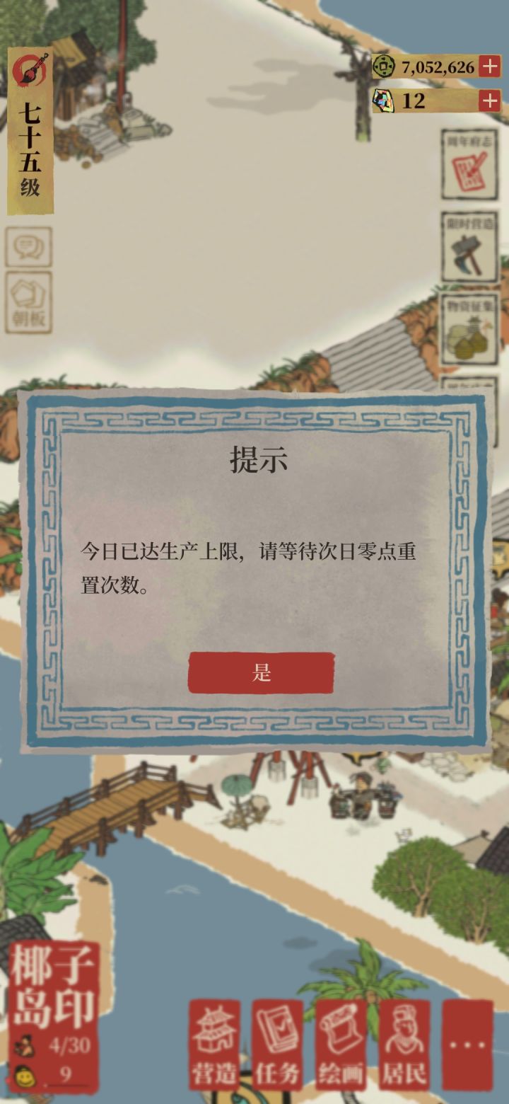 不愧是限时的活动啊,要不是8.3马上到了我开地特别急,肝了一天的椰子绳,也不会发现居然还有生产上限这回事👆🏻(欢迎来找我玩,同乡会馆保证活动期间贡献600+,游戏和账号同名哦~好友位还有五六个,会不定期清理超过二十天不上线的好友🌸)