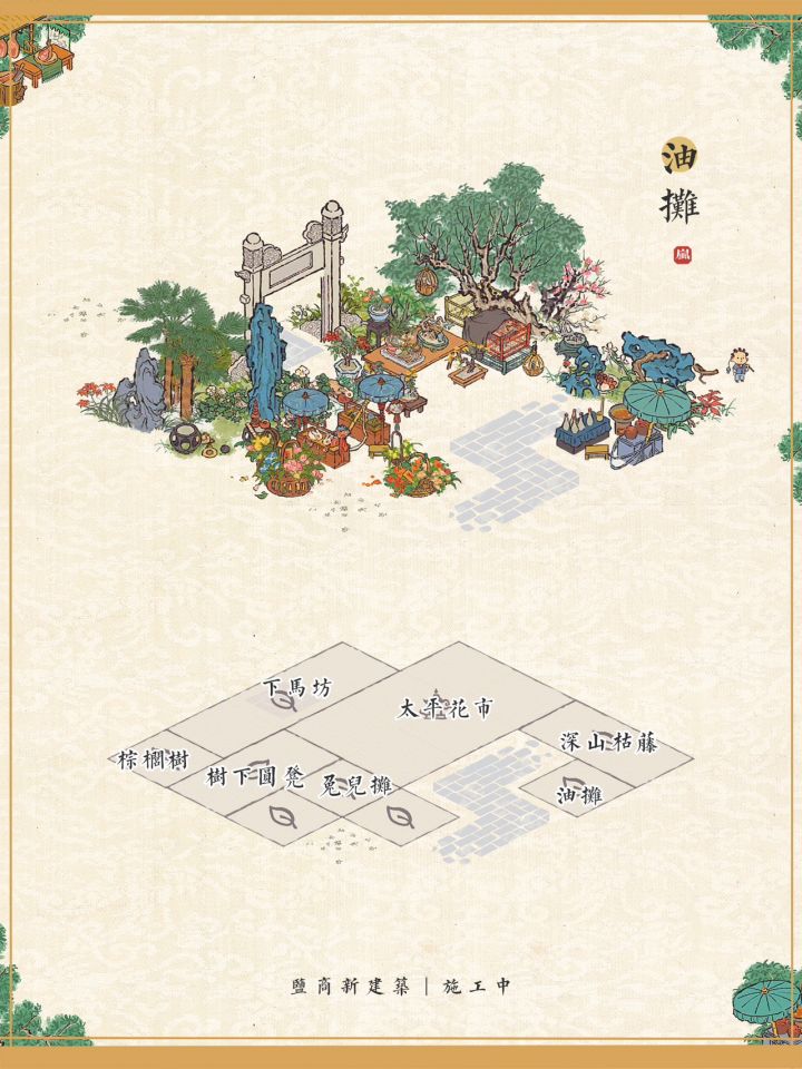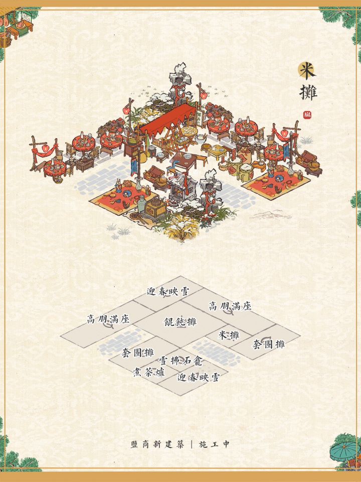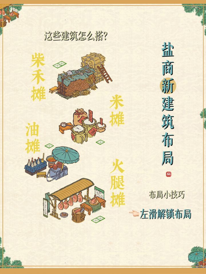 盐商新建筑布局小技巧|江南百景图盐商上新建筑:米摊、油摊、柴禾摊、火腿摊一些小摊的布局小技巧